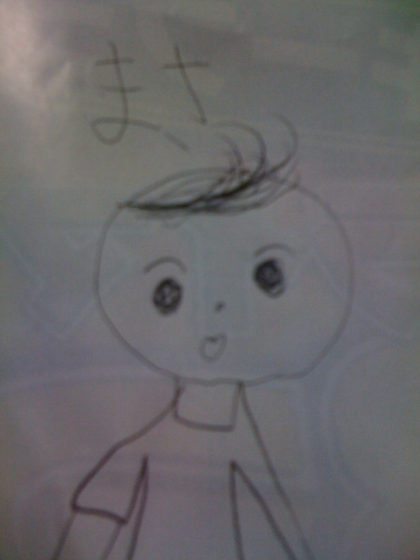 あっ。先日、姪っ子に似顔絵描いてもらいました。よく特徴をつかんでます・・・。(7歳姪っ子作)